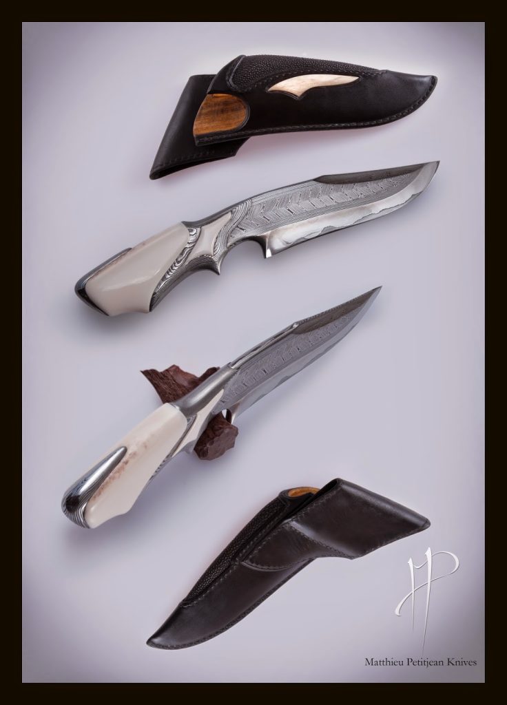MangOnt Couteau en damas, ivoire de mammouth.Fourreau en noyer gainé de cuir et galuchat, insert en ivoire de mammouth. longueur totale […]